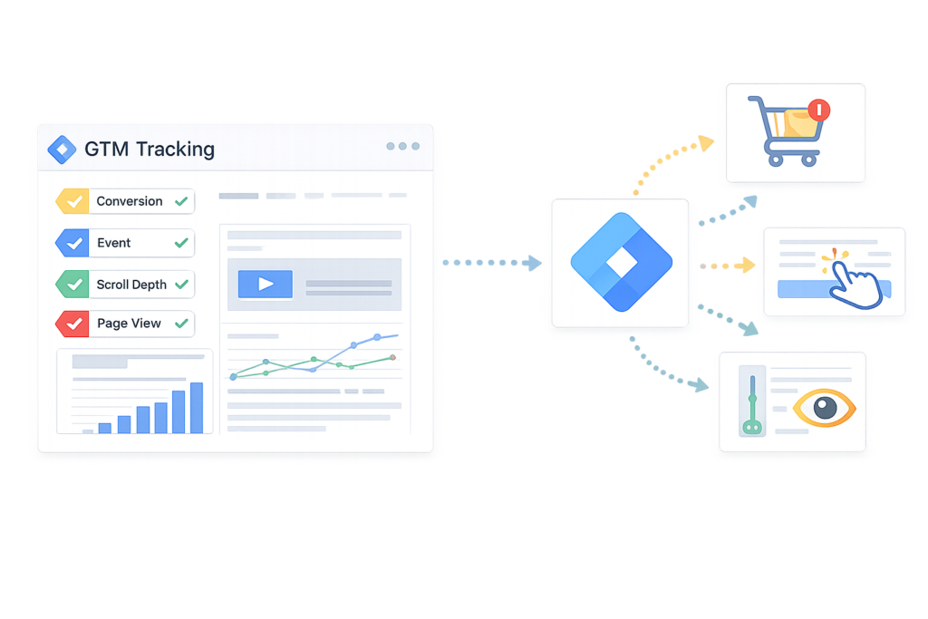 Mit Google Tag Manager setzen wir flexibles, wartbares Tracking um – ohne unnötige Eingriffe in den Code. Events, Conversions und Integrationen werden sauber gesteuert, getestet und dokumentiert, für maximale Kontrolle und Skalierbarkeit.