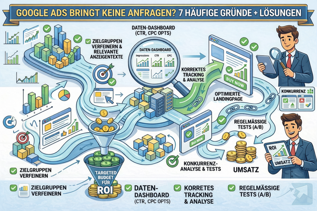 Oft liegt das Problem nicht an Google selbst, sondern an Zielgruppe, Landingpage oder fehlender Optimierung.